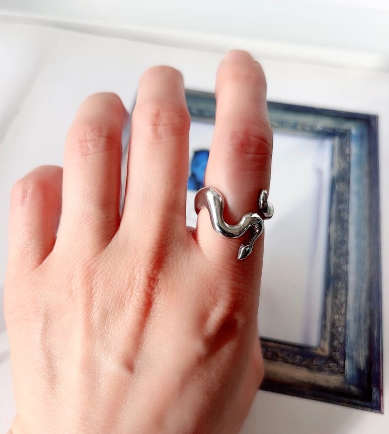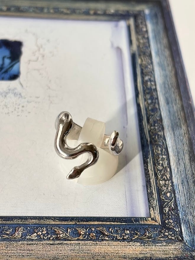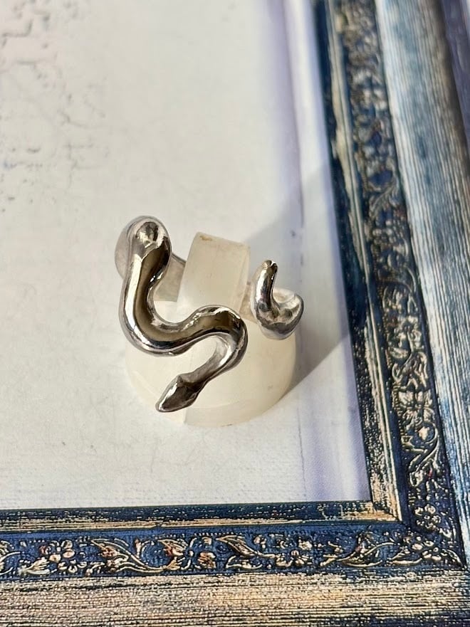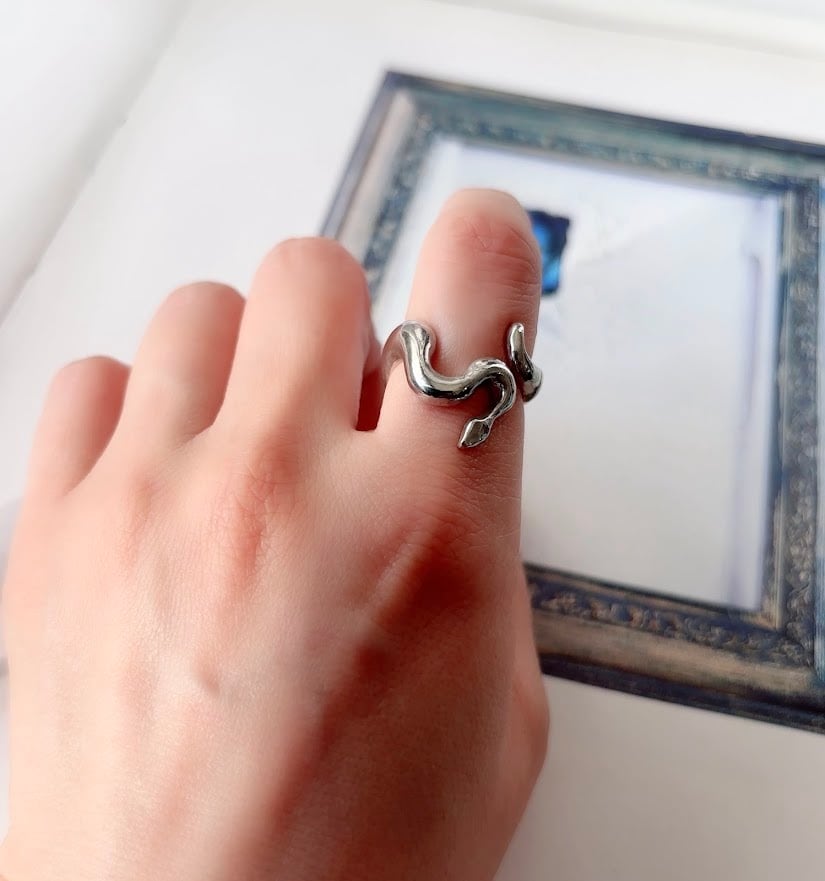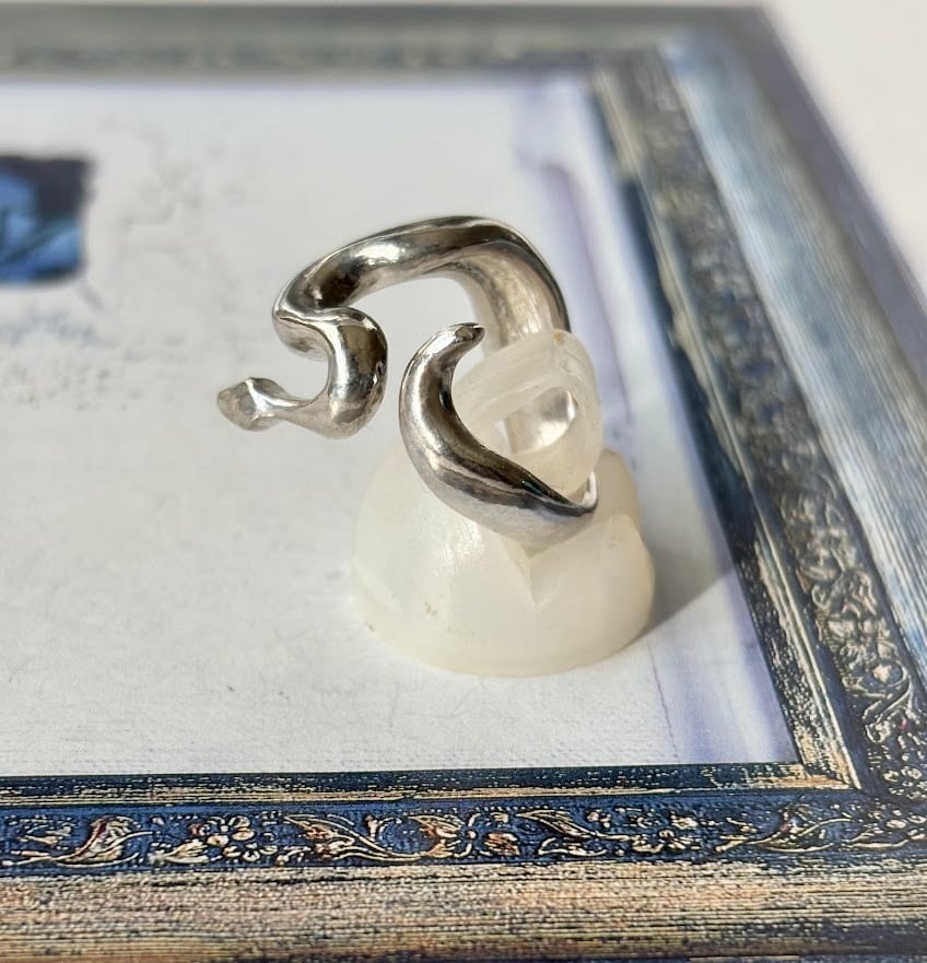 ぐるっと指に巻き付くデザイン。波打つようなボディは