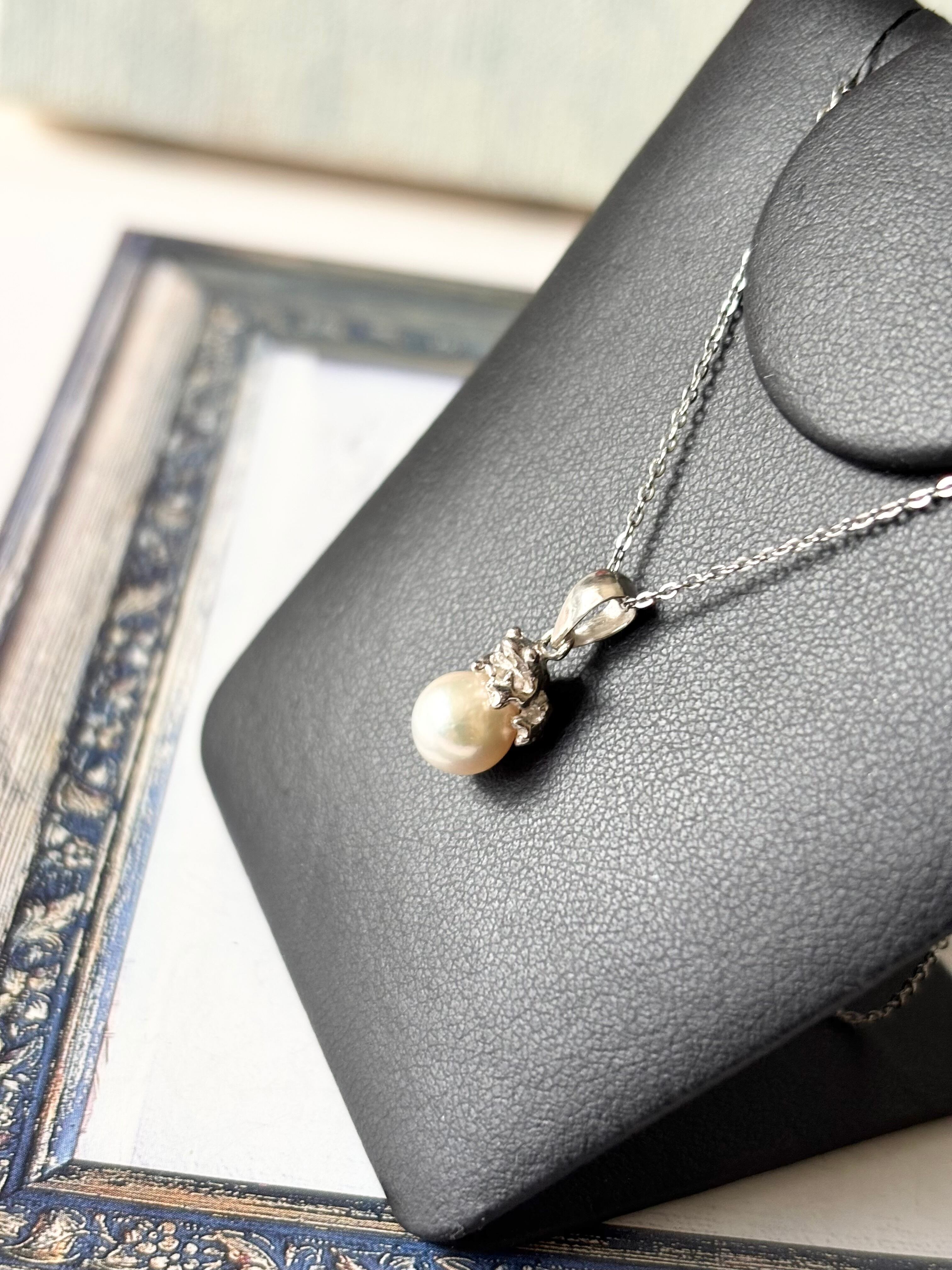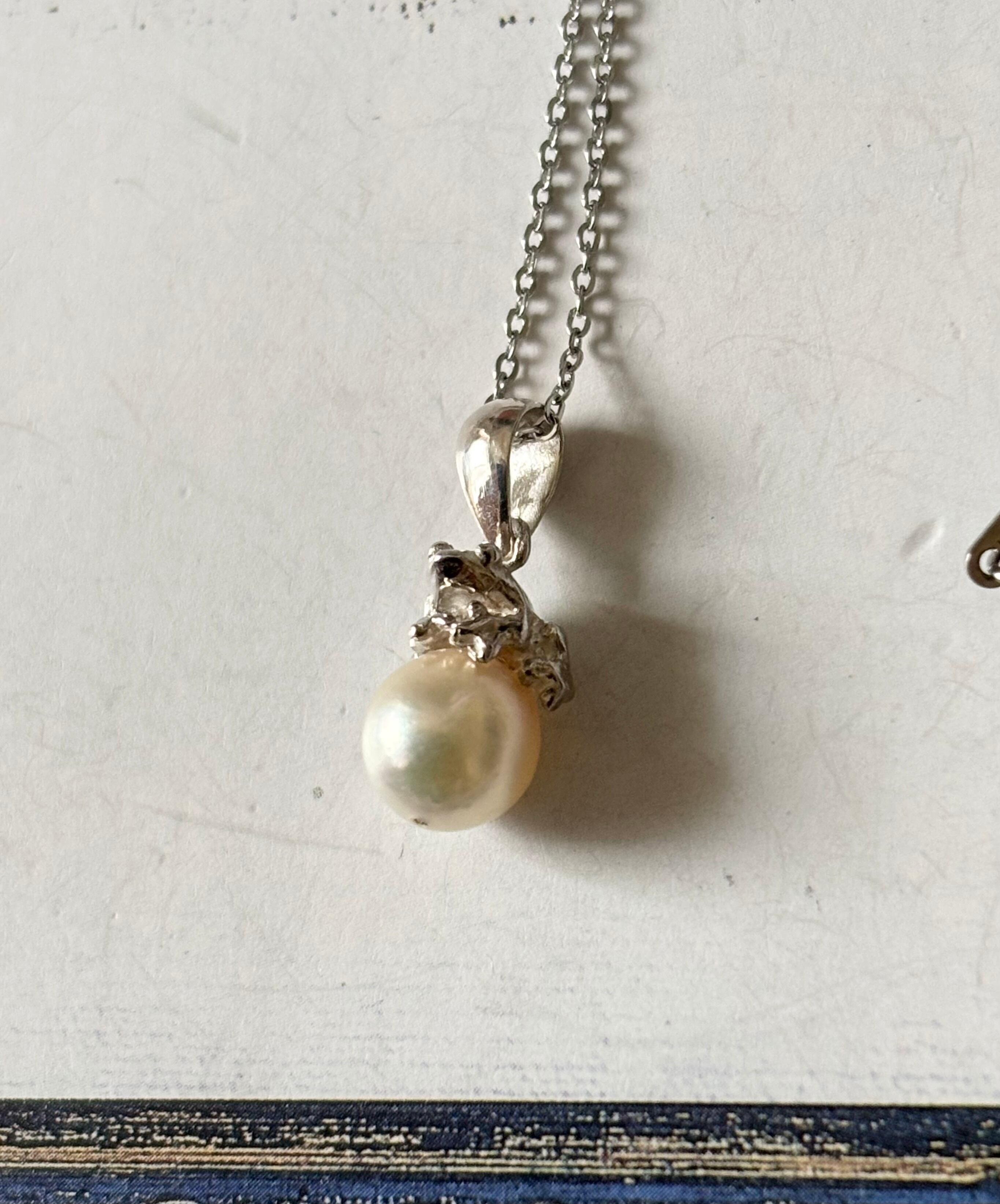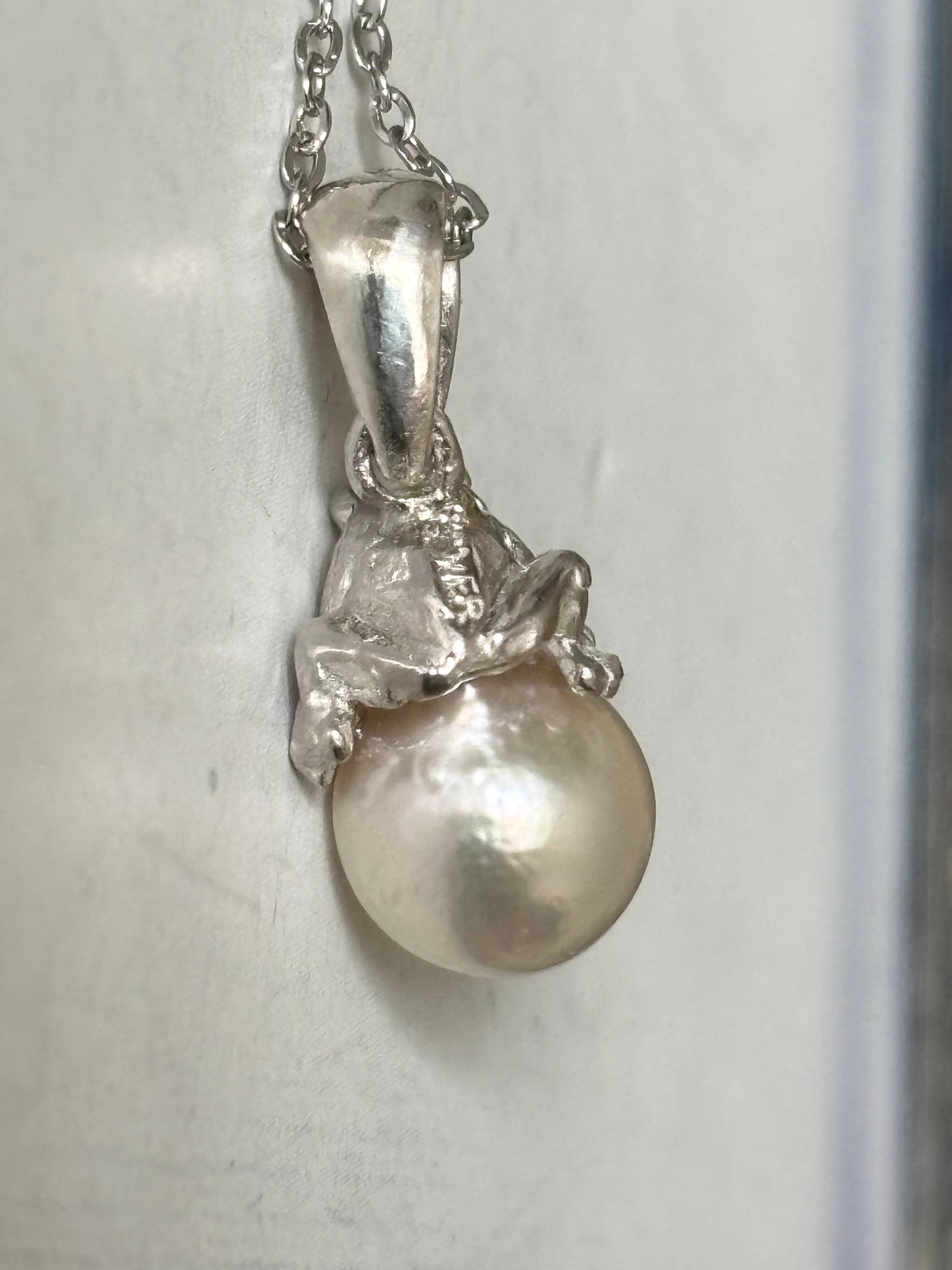 可愛いあこやパールと小さなカエルのデザインが魅力的なネックレスを作りました