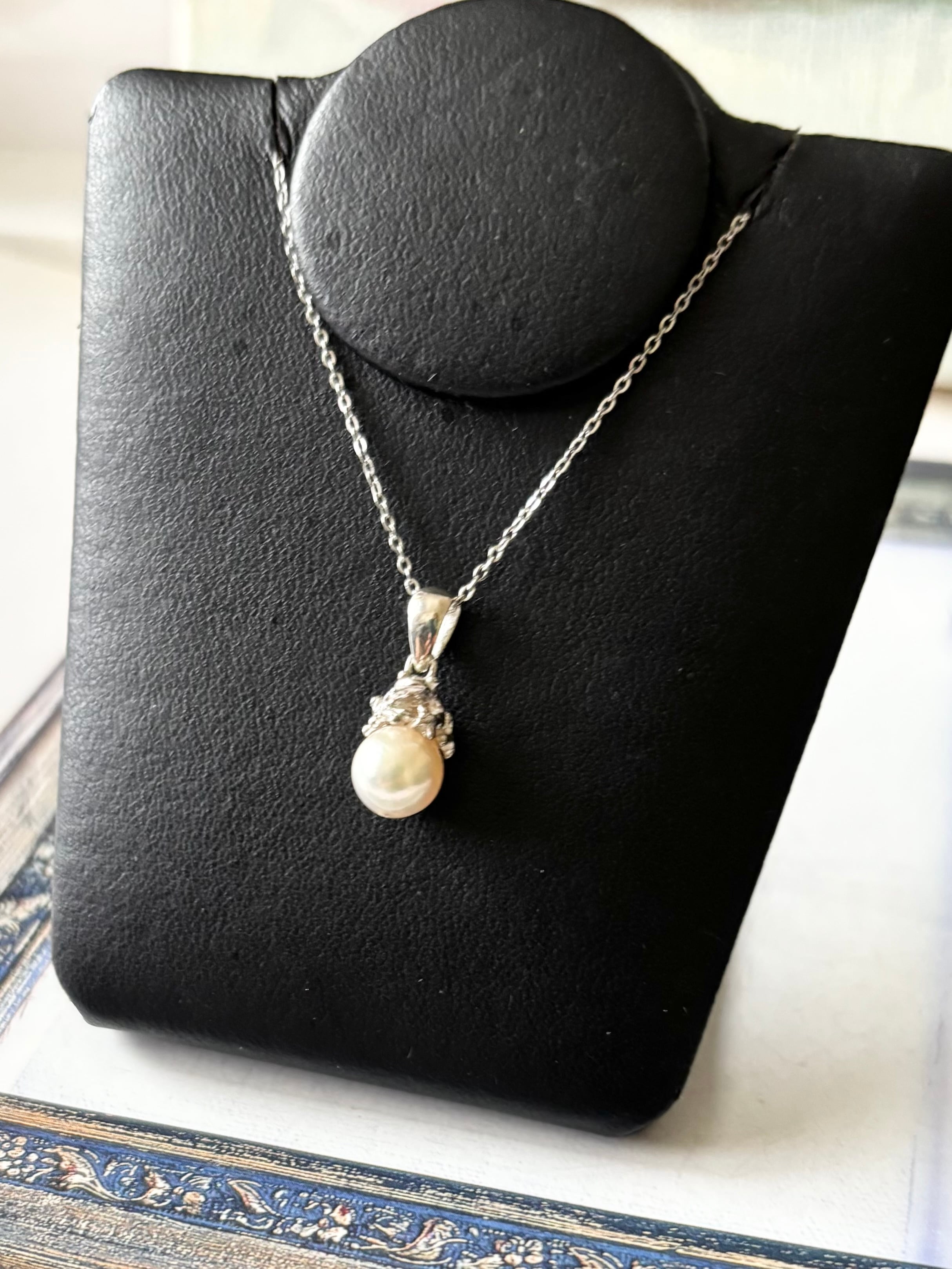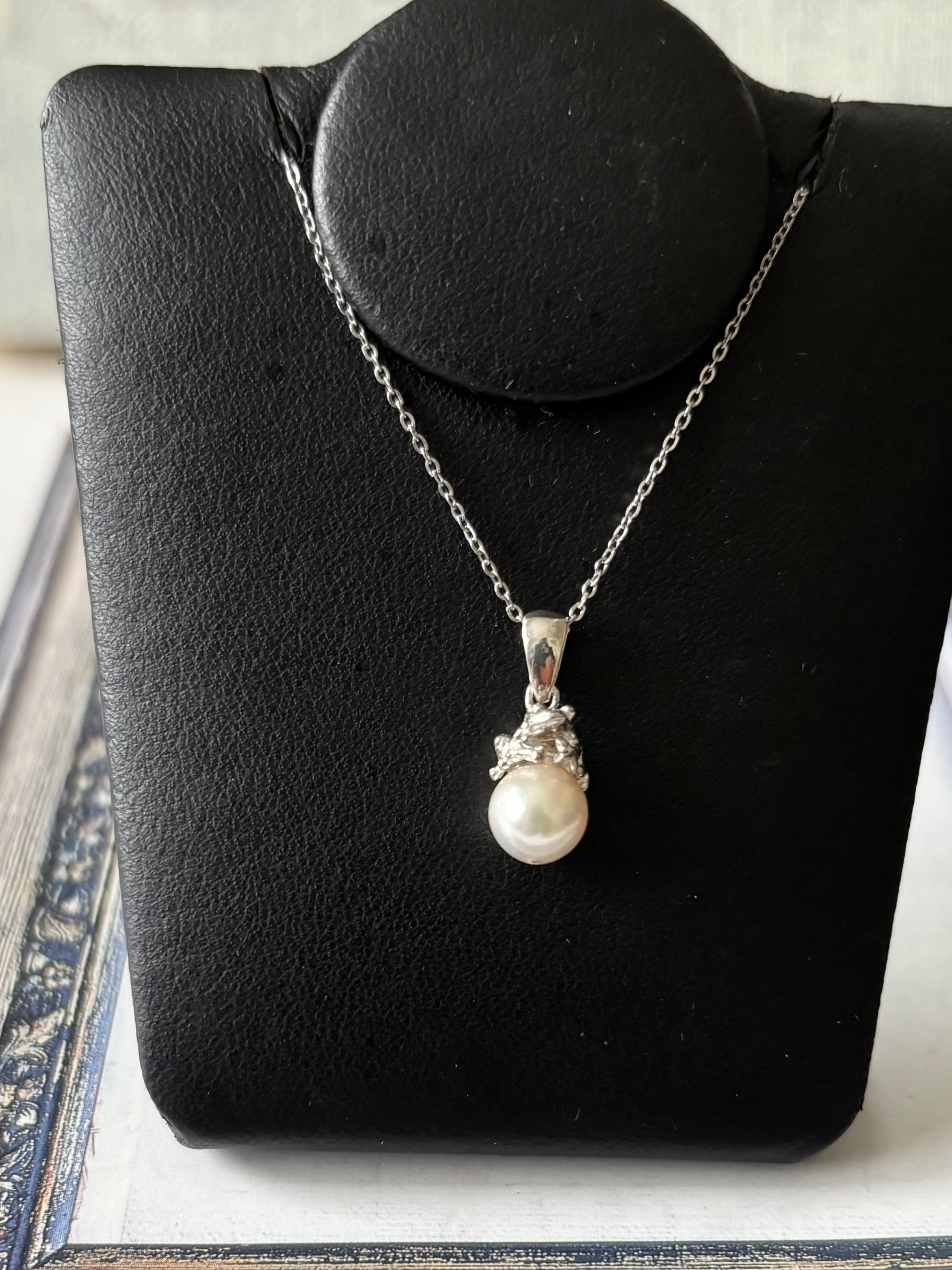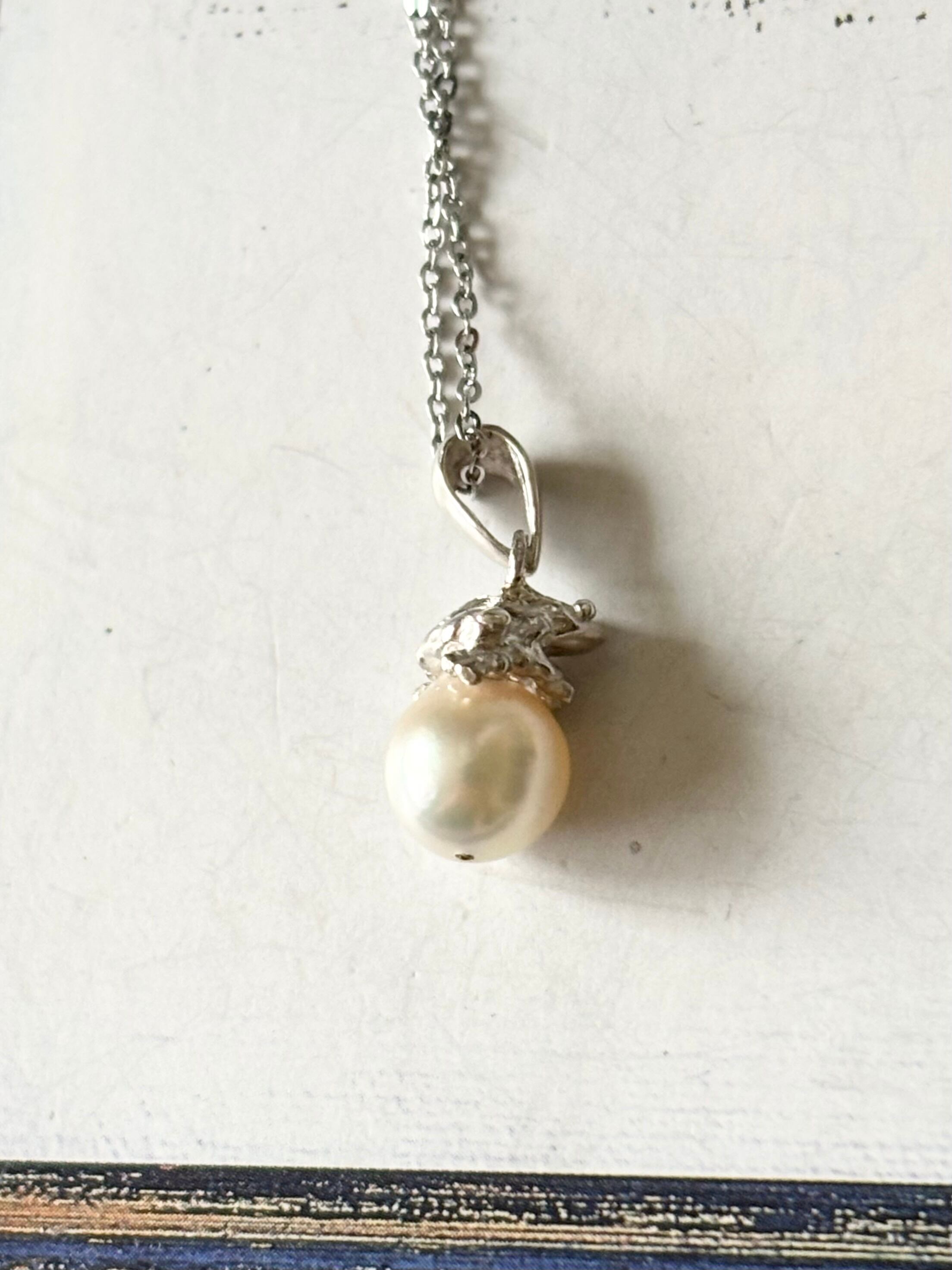 可愛いあこやパールと小さなカエルのデザインが魅力的なネックレスを作りました